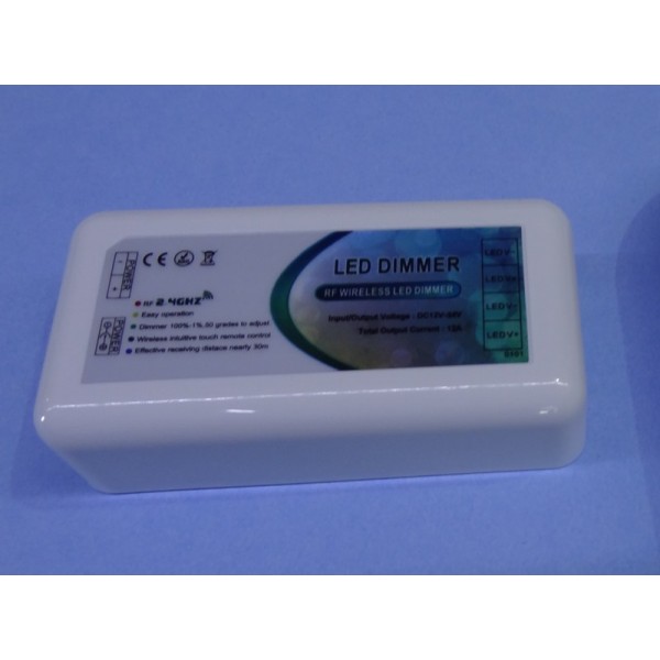 Receveur RF 2.4G pour produit DEL 12-24V d’une seule couleur. Fonctionne avec le FUT-21R (télécommande) ou l’ensemble FUT-21.